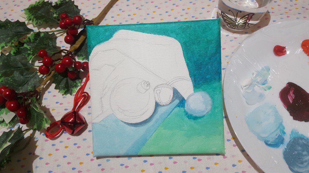 After which now we can start the drawing of our objects in the painting. The objects have easy shape so please refer to the picture above and draw it lightly with help of a pencil.